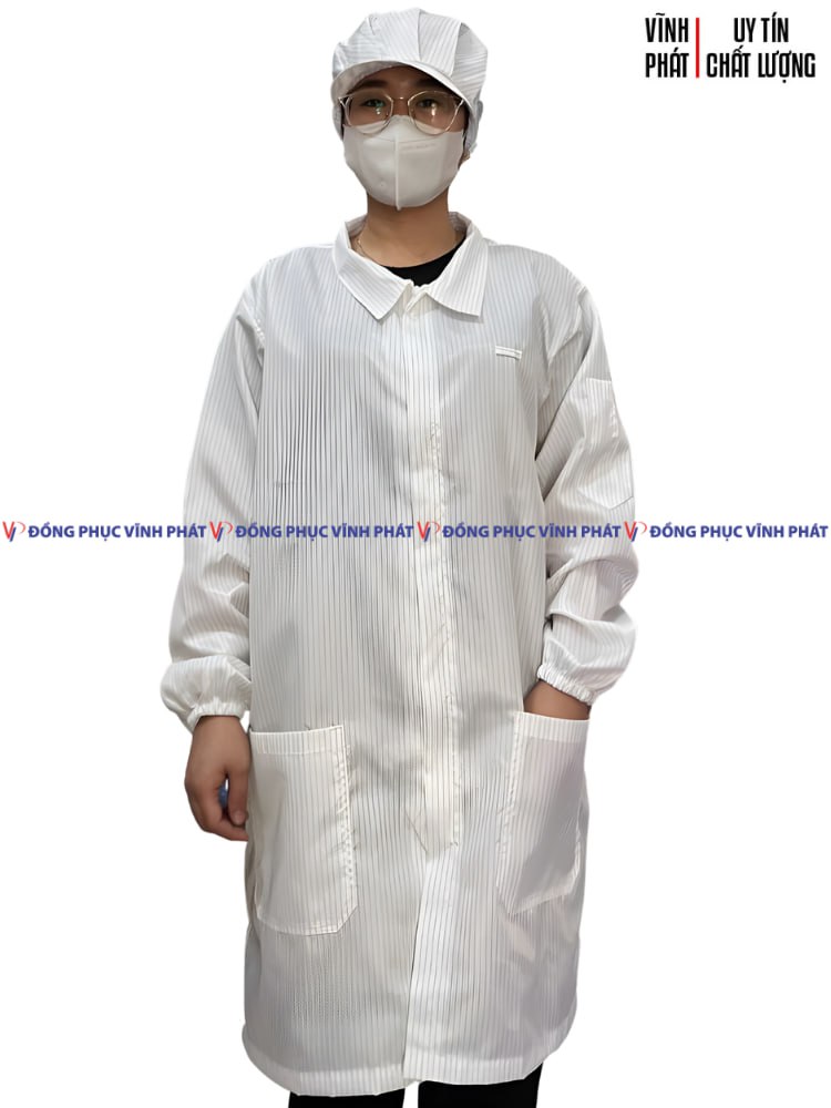 Áo thân dài khử tĩnh điện là trang phục không thể thiếu trong các ngành nghề yêu cầu môi trường làm việc sạch, an toàn và kiểm soát tĩnh điện nghiêm ngặt như: điện tử, phòng sạch, linh kiện, nhà máy sản xuất, khu công nghiệp…