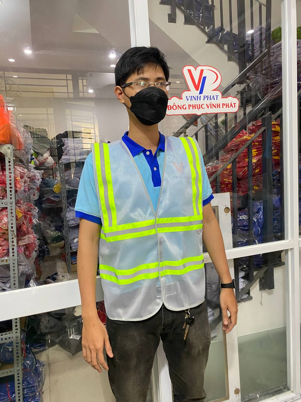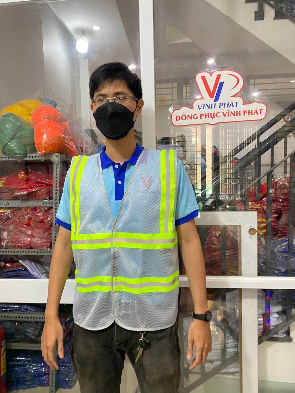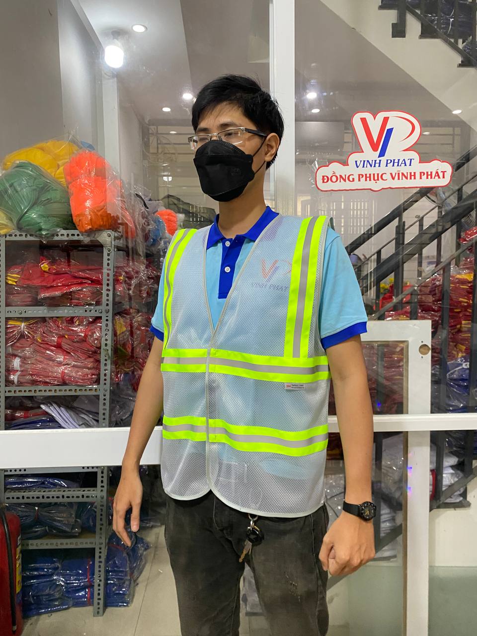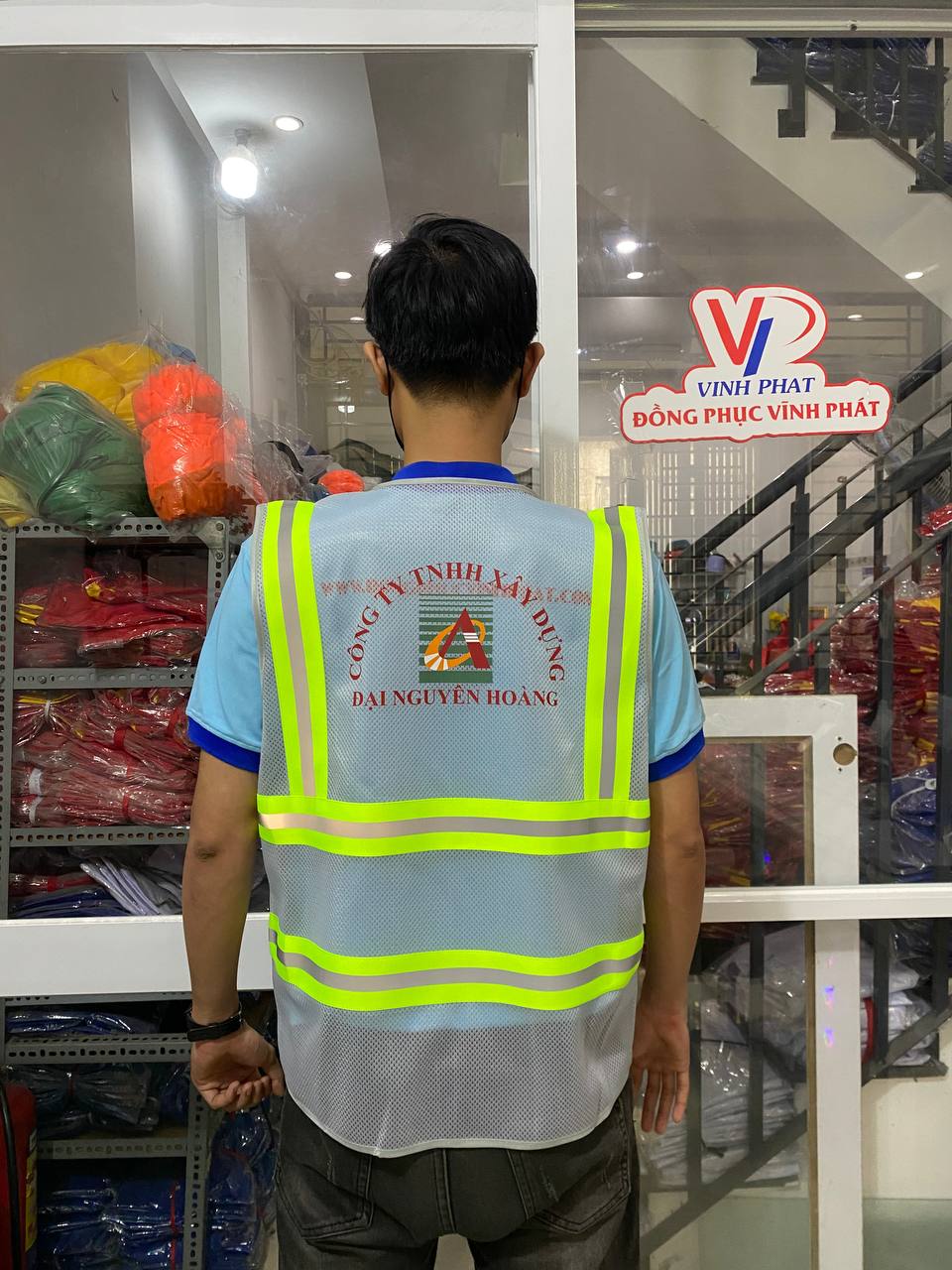 – Mô tả: Cung cấp, thiết kế in logo và bàn giao áo lưới phản quang công nhân in logo ĐNH | BHLD Vĩnh Phát