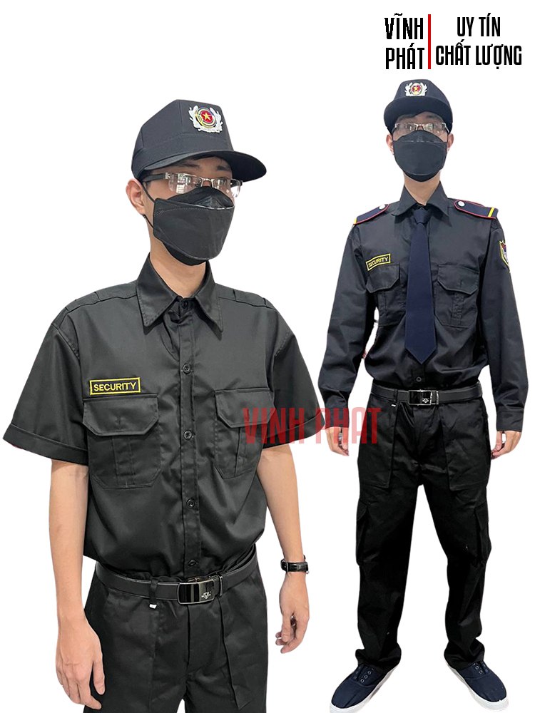 – Mô tả: Quần áo bảo vệ đen THÊU Security có kiểu dáng gồm áo sơ mi và quần đen túi hộp thể hiện sự chuyên nghiệp cho cá nhân mặc.