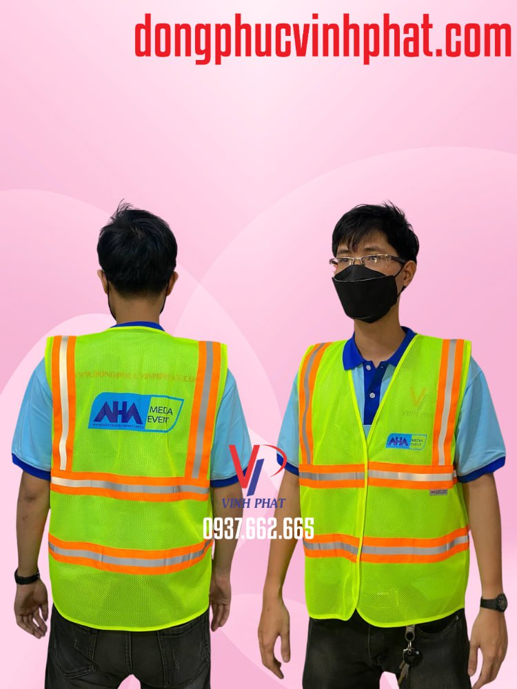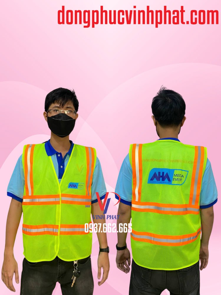Xem chi tiết mẫu mã và liên hệ đặt hàng áo lưới phản quang công trình in logo theo yêu cầu | Áo lưới phản quang AHA Media Event