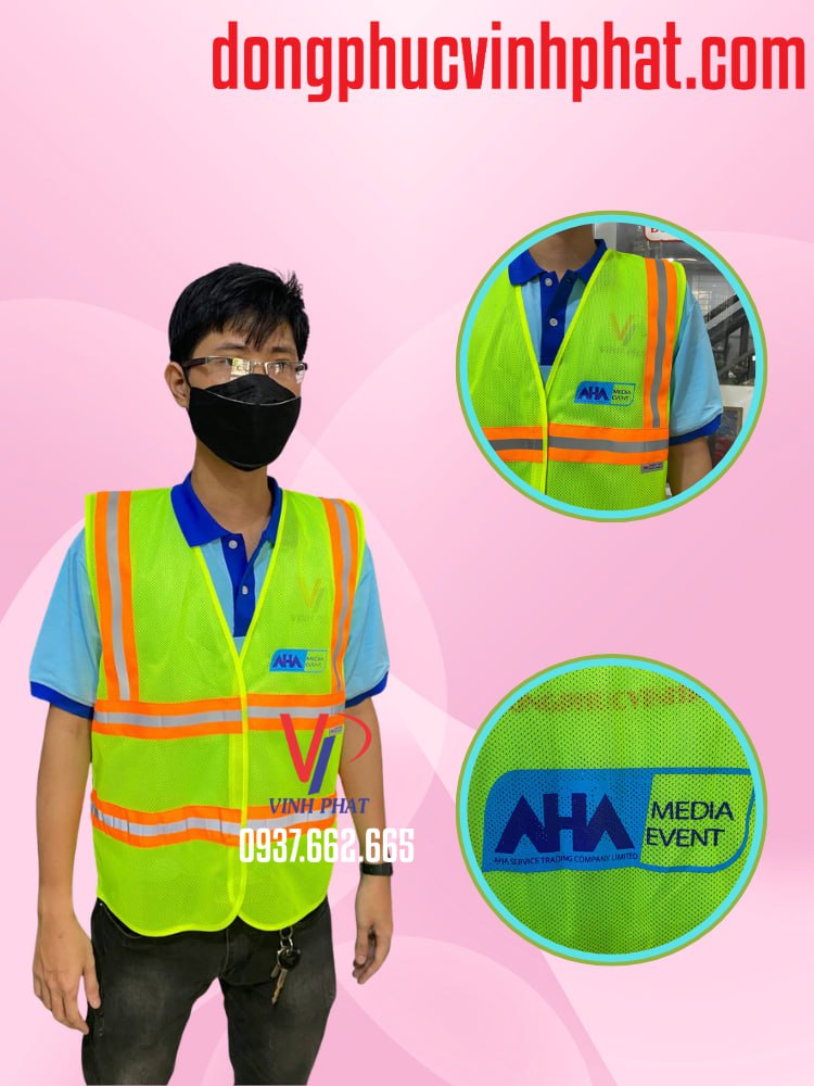 • Xem chi tiết mẫu mã và liên hệ đặt hàng áo lưới phản quang công trình in logo theo yêu cầu | Áo lưới phản quang AHA Media Event